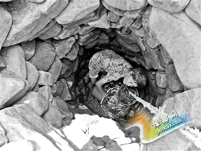 叶县五间房村,78岁的郭玉兰每天两次下到深井中取水