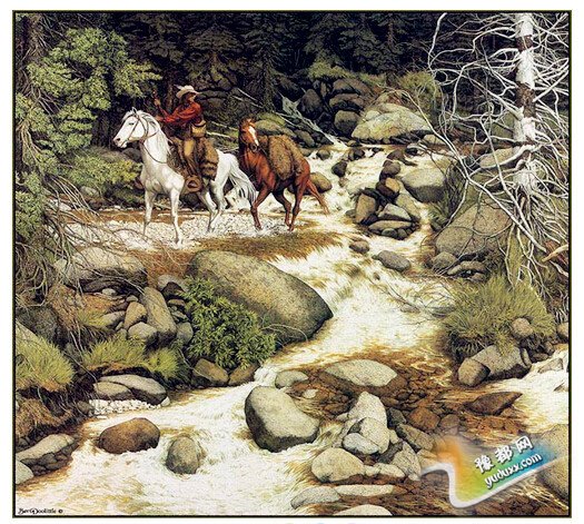 在这张画里我只看到12个人面,从左上角的树开始算~~~~看到的人可以发现一次有5个人的面,到右边往下看,凌乱的树枝是一个面,树枝的下面水塘有一个人面,马的右边还有一个人面,再来看水塘的最下方,中间有一个人面,左边靠树那里还有一个很明显的人面,它的右边紧贴着有个侧面,他左边,图的最左下角还有个侧面。