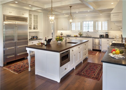 厨房的装修要求简单明亮,建议选择显得干净有质感的浅色,如米色、象牙色。最忌讳大红色和纯黑色。红色属火,炉灶也属火,会导致厨房火气过盛,家中女主人的脾气暴躁不安,脾胃功能现障碍。黑色属水,水火相冲的格局易影响伴侣的健康。