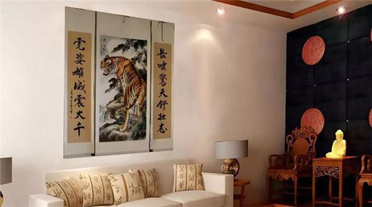 客厅是一家人下班以后享受天伦之乐的场所,应该装饰的温馨一些。忌讳有老虎和雄鹰一类的猛兽书画,其中老虎容易伤人,会给家人带来意外和流血之灾,雄鹰也是如此,如果家庭成员有属羊、鼠、蛇的生肖,在有意外灾伤发生时,肯定会先应验在他们的身上,这就是磁场的作用。除此以外,抽象类的书画会让人情绪混乱,落差较大的瀑布预示破财,日沉大海会阻碍事业发展等!