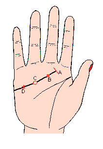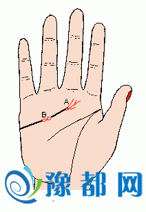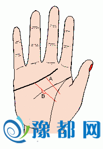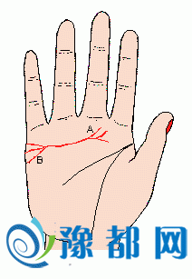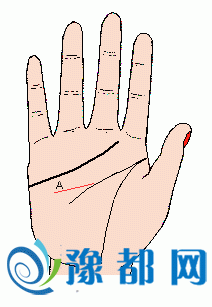 感情线的末端,有一小横切线(记号A)(如下图),表示与爱人离别后,感情不能像原先那样好;