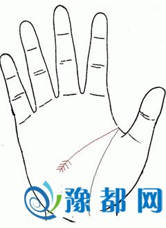 智慧线末端分叉、弯垂尾梢在中、无名、小指的范围新生平直或钭上翘的: