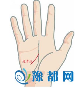 遇贵纹顾名思义是指一生的贵人运,其是位于手掌乾宫与手中的事业线相连的纹理。手相上有遇贵纹的人,在事业上自身能力比较强,而且为人具有亲和力,能够结交很多朋友。其在事业的每个阶段都容易遇到贵人,可以说命中机遇很多,只要自己够努力,能善于听取身边人的劝告,则会事业步步高升。这种手相的人适合从事业务、公关、市场类工作,“钱”途无量。