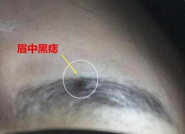 眉毛中呈现黑色的痣,是一不祥的意味,眉毛为兄弟宫又为文采之方,普通较有才气,有妙笔生花之说