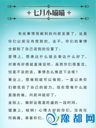 《猫石对话2016年6月运势(7)》由河南新闻网-豫都网提供,转载请注明出处:http://www.yuduxx.com/xingzuo/yunshi/416185.html,谢谢合作!