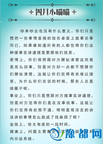 《猫石对话2016年8月运势(4)》由河南新闻网-豫都网提供,转载请注明出处:http://www.yuduxx.com/xingzuo/yunshi/594914.html,谢谢合作!