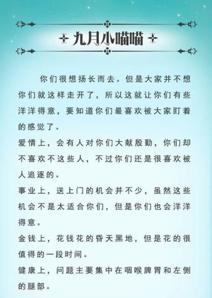《猫石对话2016年9月运势(9)》由河南新闻网-豫都网提供,转载请注明出处:http://www.yuduxx.com/xingzuo/yunshi/678466.html,谢谢合作!